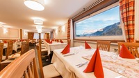 Ristorante e bar Il panorama che si gode dalle vetrate della sala ristorante spazia dal paese fino alla cima del Sasso Croce. Un ricco buffet servito e caffetteria espressa per la colazione. A cena il menù è servito al tavolo e viene arricchito da un buffet di sfiziosità, crudità e dolci, dove potrete apprezzare i piatti della tradizione locale e internazionale. |